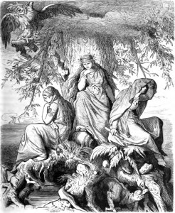 Deși Nornele sunt destul de numeroase, după interpretarea lui Snorri Sturluson în „Völuspá”, cele trei cele mai importante sunt numite Urd (trecutul), Verdandi (prezentul) și Skuld(viitorul) și locuiesc în apropierea fântânii Destinului. Ele scot apă și udă copacul Yggdrasil, astfel încât ramurile sale să nu putrezească niciodată. Nimeni nu poate modifica soarta hărăzită de norne. Skuld era singura nornă care era în același timp și o walkirie.