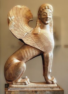În mitologia greacă, Sfinxul este un monstru feminin căruia i se atribuie figura unei femei și corp de animal: pieptul, picioarele și coada unui leu și aripi de pasăre.