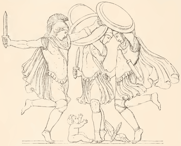 Romulus și Remus sunt cei doi gemeni , fondatori ai Romei, crescuți de o lupoaică după ce fuseseră condamnați la moarte de Amulius fratele bunicului lor care-și dorea tronul din Alba Longa. Servitorul însărcinat cu omorârea celor doi îi pune într-un coș pe malul râului Tibru dar sunt salvați de zeul râurilor Tiberinus. După moartea lui Remus, Romulus fondează orașul Roma. Noul oraș nu avea femei așa că Romulus se hotărăște să răpească femei în timpul unui festival acest episod fiind cunoscut ca „răpirea sabinelor” ( Sabinii fiind un popor din împrejurimile Romei).