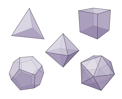 Se spune că un poliedru este regulat dacă este format din fețe identice și regulate, și toate vârfurile sale sunt identice (că există același număr de margini care converg la fiecare vârf). Cinci poliedre sunt convexe și cunoscute sub numele de „corpurile lui Platon”.