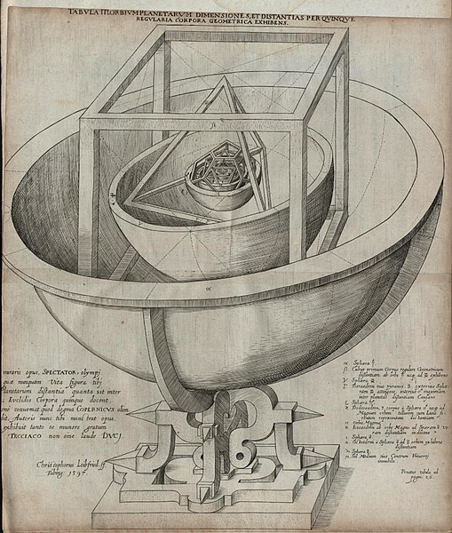 În 1596, Kepler a publicat prima sa lucrare, Mysterium Cosmographicum, unde și-a afirmat poziția copernicană, și-a stabilit obiectivul de a răspunde la trei întrebări referitoare la numărul de planete, distanța lor de Soare și, în final, viteza lor.