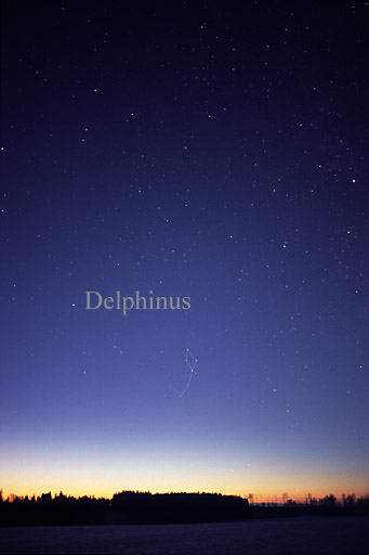 O poveste frumoasă este cea amintită de Pseudo-Hyginus care spunea că Eratostene și alți învățați dau următorul motiv pentru apariția constelației Delfinul printre stele: Amphitrite, atunci când Neptunus (Poseidon) a dorit să o ia în căsătorie, a preferat să-și păstreze virginitatea și a fugit în munții Atlas; Neptunus a trimis pe mulți să o caute, printre ei și un anume Delphinus, care, în pribegia lui printre insule, a venit în cele din urmă la fată, a convins-o să se căsătorească cu Neptunus, și și-a luat el însuși responsabilitatea organizării nunții. În schimbul acestui serviciu, Neptunus l-a pus pe cer sub forma unei constelații.