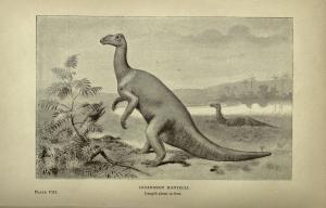 4.Iguanodon. Iguanodon este un dinozaur din ordinul Ornithischia, subordinul Ornithopoda, caracterizat printr-un bazin similar cu cel al unei păsări.