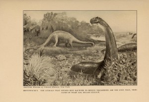 5.Brontosaurus.Brontosaurus (Brontosaurus, greaca veche, șopârlă- tunet) este un gen de dinozaur sauropod ierbivor din familia Diplodocidae, descoperit în 1879 de către Otniel Charles Marsh, dar care a fost mult timp confundat cu Apatosaurus, acesta fiind descoperit recent. În 2015, un studiu a restabilit Brontosaurus ca aparținând unui gen autonom. Brontozaurul a trăit în America de Nord la sfârșitul Jurasicului, în urmă cu 156 – 150 milioane de ani.