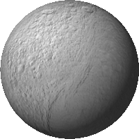 Tethys al treilea satelit al lui Saturn ( Saturn III) este plin de cratere și tăiat de o serie de grabene. Cel mai mare crater de impact, Odiseu, are un diametru de aproximativ 400 km, în timp ce cel mai mare graben, Ithaca Chasma, are o lățime de aproximativ 100 km și o lungime de peste 2000 km. O mică parte a suprafeței este acoperită de câmpii netede care pot avea origine criovolcanică.
