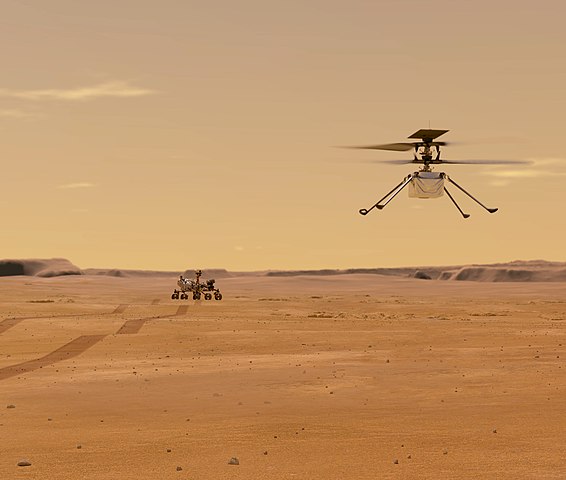 Ingenuity, este un mic elicopter robot care operează pe Marte ca parte a misiunii NASA Mars 2020 împreună cu roverul Perseverance, care a aterizat în 18 februarie 2021. Două luni mai târziu, în 19 aprilie, Ingenuity a finalizat cu succes primul zbor extraterestru controlat, cu decolare verticală, planare și aterizare, pentru o durată de zbor de 39,1 secunde.