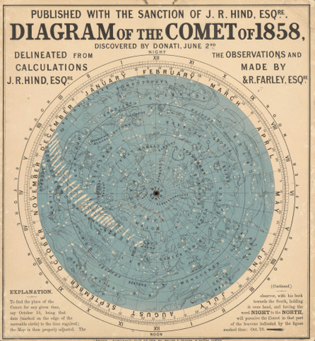 În 2 iunie 1858, cometa Donati a fost văzută pentru prima dată și a fost numită după descoperitorul ei, Giovanni Battista Donati, la Florența. A fost a doua cea mai strălucitoare cometă a secolului al XIX-lea. A ajuns la periheliu la 30 septembrie 1858. Când era cel mai aproape de pământ, la 9 octombrie 1858, se afla la aproximativ 0,5 UA distanță(1 UA =distanța Soare-Pământ) și dezvoltase o coadă triplă. A fost prima cometă care a fost fotografiată. Cu o perioadă orbitală estimată la mai mult de 2000 de ani, nu se va întoarce până în jurul anului 4000.