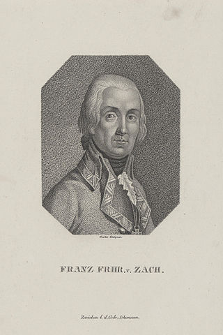 Franz Xaver von Zach (n. 4 iunie 1754, Pesta ,actuala Budapesta-d. 2 septembrie 1832,Paris) a fost un astronom director al Observatorului de lângă Gotha (1787-1806). Acolo a organizat în 1798 primul congres de astronomie cu Josef Lalande (1732-1807) ca invitat celebru. În ultimii ani ai secolului al XVIII-lea, el a format un grup de 24 de astronomi aleși din toată Europa pentru a găsi o planetă „dispărută” între orbitele lui Marte și Jupiter, unde au descoperit asteroizii. Contribuția sa cea mai mare a fost în domeniul organizatoric pentru că a menținut o corespondență enormă cu toți astronomii timpului său și a editat 28 de volume din Monatliche Korrespondenz zur Beforderung der Erd- und Himmelskunde (Corespondență lunară pentru promovarea geografiei și științei cerești, 1800-1813).