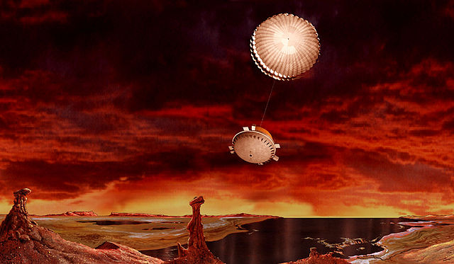 În 14 ianuarie 2005,Sonda Huygens a aterizat pe Titan satelitul lui Saturn. În primele trei fotografii primite de la Huygens pe suprafața lui Titan, oamenii de știință au văzut ceea ce semăna cu canale de drenaj, un țărm, regiuni inundate, înconjurat de teren înalt și o câmpie acoperită cu bolovani mari, eventual de gheață.