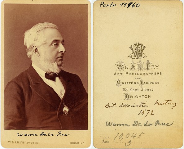 Desenele sale au îmbunătățit acuratețea și detaliile soarelui, lunii și planetelor. A progresat în fotografie, inclusiv în plăci stereoscopice pentru a vedea topografia lunii și a soarelui. În 1860, De la Rue a dus fotoheliograful în Spania cu scopul de a fotografia eclipsa totală de soare care a avut loc la 18 iulie a acelui an. Fotografiile obținute cu acea ocazie au dovedit fără îndoială caracterul solar al proeminențelor sau flăcărilor roșii, văzute în jurul limbului lunii în timpul unei eclipse de soare. În 1873, De la Rue a renunțat la munca activă în astronomie și și-a prezentat majoritatea instrumentelor astronomice la observatorul universitar din Oxford.